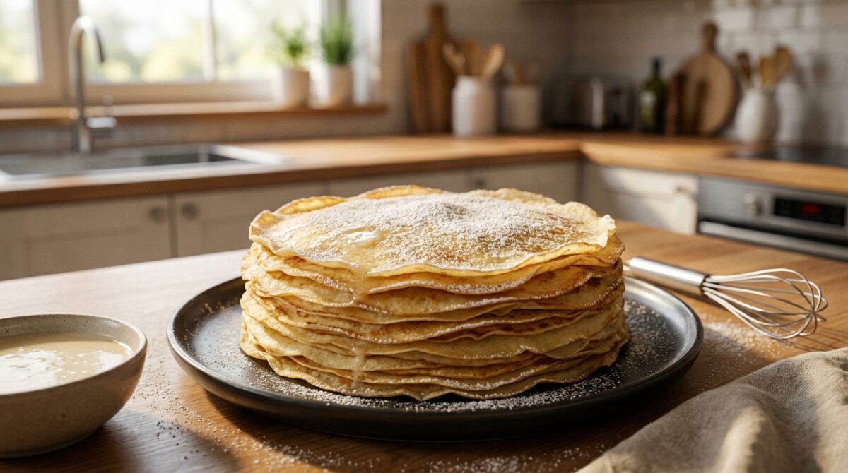 Cette recette de pâte à crêpes moelleuse de Philippe Etchebest permet d’obtenir des crêpes fines, souples et parfaitement dorées. La texture est fluide, sans grumeaux, avec un équilibre idéal entre lait, œufs et farine. Un léger parfum de rhum et de beurre fondu apporte une vraie touche de gourmandise. Cette version est inratable, adaptée à la chandeleur, aux goûters et aux brunchs. Avec quelques astuces simples, vous maîtrisez une base de cuisine utile toute l’année.