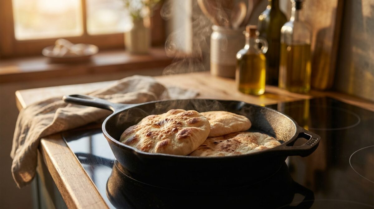 Le batbout ne gonfle pas si la levure n’a pas été correctement activée ou si la pâte n’a pas assez reposé. Vérifiez que l’eau est tiède et non chaude, laissez bien mousser la levure et respectez le temps de levée. Une pâte trop sèche ou une poêle insuffisamment chaude empêchent aussi la formation de la poche d’air à l’intérieur.