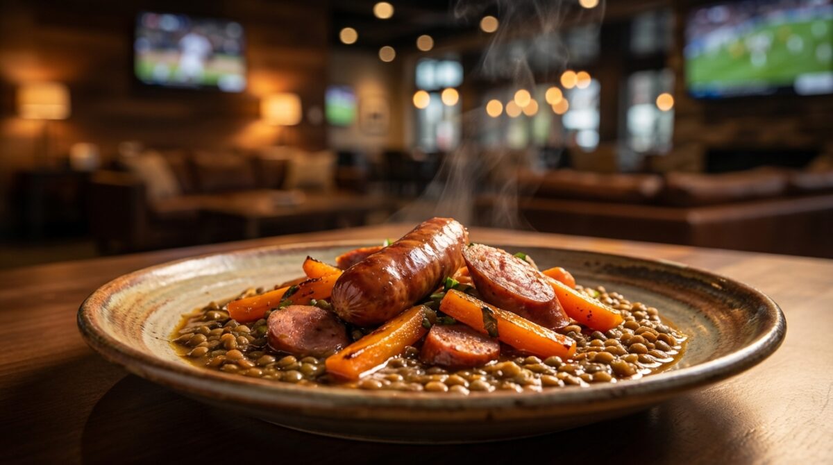 Un plat d’hiver complet aux lentilles, carottes et saucisse fumée pour une cuisine réconfortante