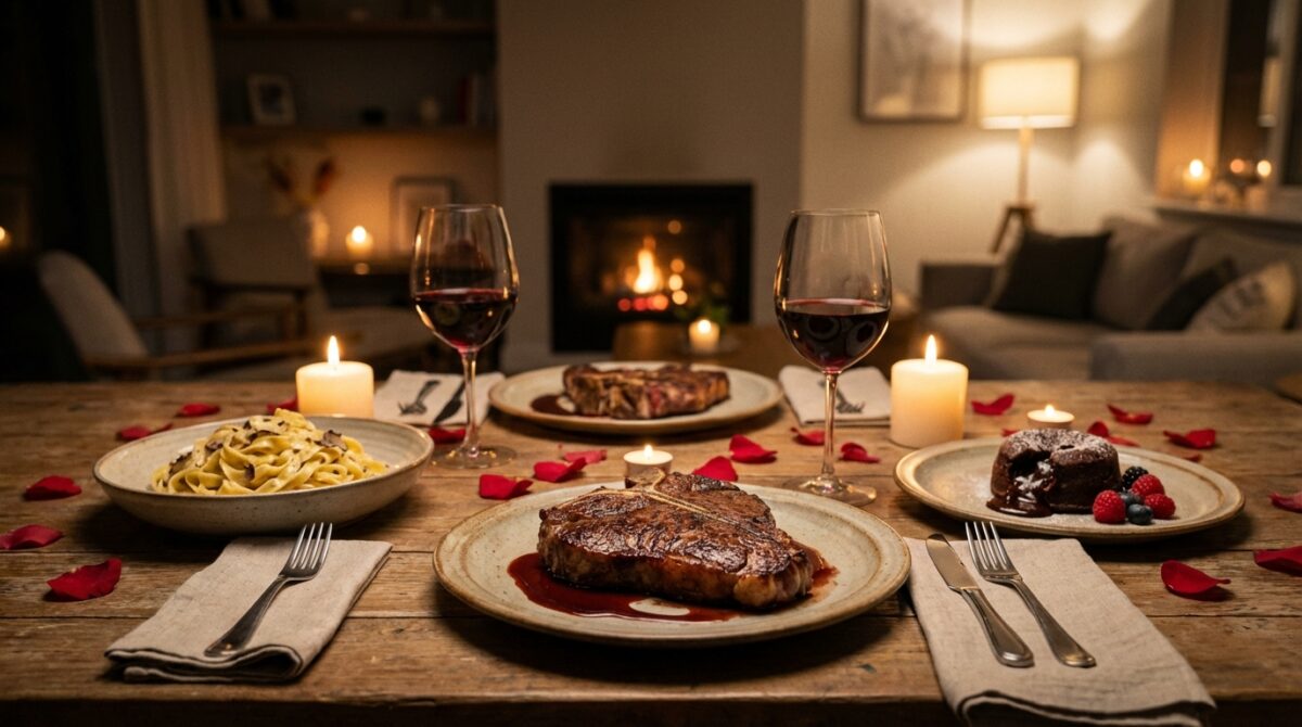 Pour un repas de type « comfort food » – lasagnes, macaroni cheese, sausage ragu – un dessert plus aérien, comme une mousse légère ou une panna cotta, équilibrera le tout. À l’inverse, un menu très végétal avec vegan wellington, creamy mushroom pasta ou tomato & mascarpone risotto supportera bien un dessert au chocolat, afin de clore le repas sur une note plus intense. En gardant cette logique de contraste ou de continuité, vous structurez un repas romantique vraiment harmonieux.